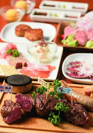 熟成させた肩ロースのステーキや、ローストビーフサラダ、自家製ソーセージなどまさに肉づくしの贅沢コース!