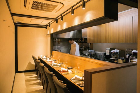 西中洲の古い雑居ビル1階奥に、ひっそりと看板を掲げるのが2016年にオープンした『RISTORANTE TOMOHIRO SUZURI』。席はカウンターのみの「6席」と聞くと緊張するけれど、いざ訪れてみるとゆっくりと食事が楽しめる居心地の良い空間。2人、3人連れで利用するほか、5・6名での貸切もOK!