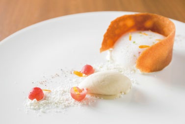 コースは昼・夜ともに7000円のワンコースのみ。前菜からドルチェまで7皿で構成され、その一皿一皿に鈴里知宏シェフの繊細な仕事が光る。そんなシェフの手にかかれば、聞き馴染みのある素材たちが形を変え、色を変え、味わいを変えてテーブルの上に登場する。