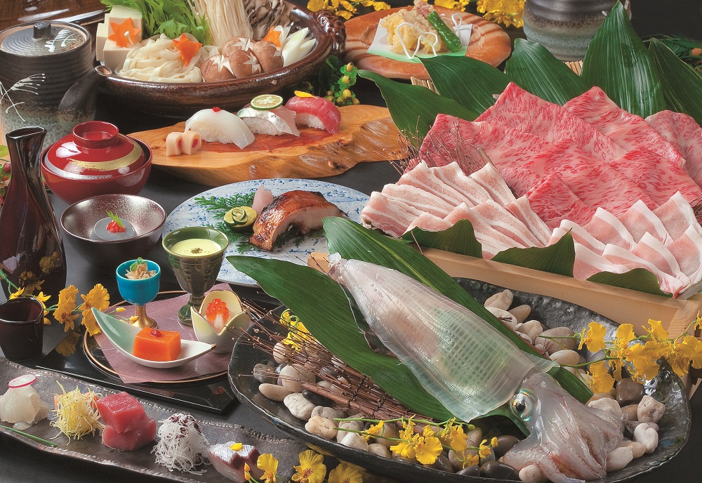 ◎活イカと阿蘇自然豚と宮崎黒毛和牛しゃぶしゃぶ会席コース