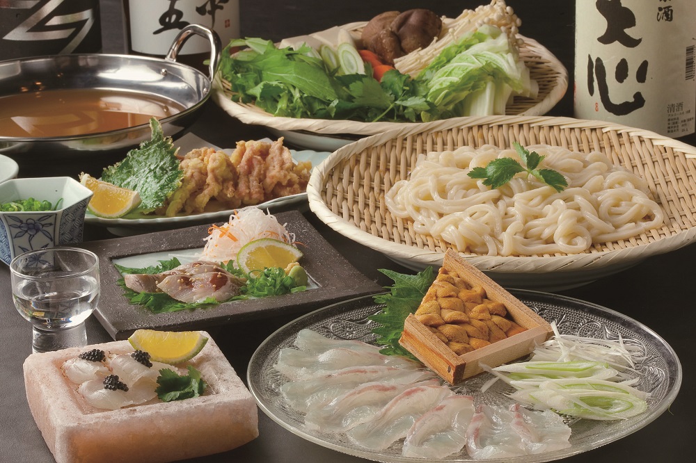 ’17年6月にオープンするやいなや、ダシの旨さで評判のうどん居酒屋『博多うどん処 泰吉』。昆布と鰹節を独自にブレンドした絶品ダシをさらに楽しむのにオススメなのが『鯛と雲丹のうどんダシしゃぶしゃぶコース』(4,000円)。ウニを鯛で包んでダシにくぐらせると旨味が倍増!目からウロコの新しい食べ方と大評判!!〆はうどんor雑炊から選べるので、旨味が溶け出したスープを最後の一口まで飲み尽くしてみて♡また、前日までに予約をすれば昼でも楽しめるので、県外客をもてなす際はぜひ利用してみよう♪
