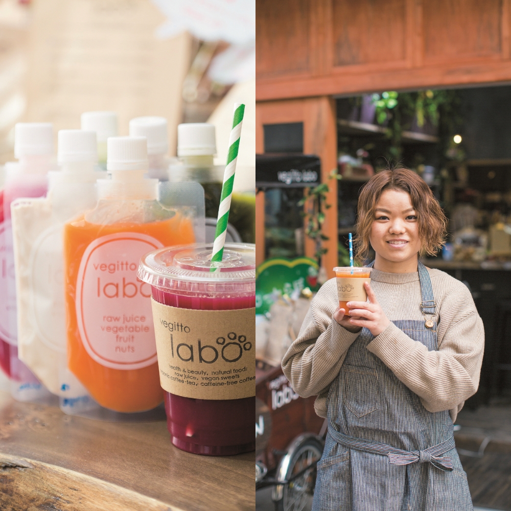 川端商店街の『ダイソー』の2軒隣にあるコールドプレスジュース専門店『べじっとらぼ』。店内で切り盛りする明日菜さんは管理栄養士でローフードマイスター準1級の資格を持っており、お客さんの悩みや症状に合わせて、その都度コールドプレスジュースを作ってくれる。また、明日菜さんの故郷である五島のジャムやかんころ(干し芋)、椿油など良質でプチプライスの品がディスプレイされていて、ちょっとしたギフトにも使える。『べじっとらぼ』のインスタグラムでは、その日のオープン状況を毎日発信しているので行く前にチェックしよう♪