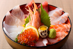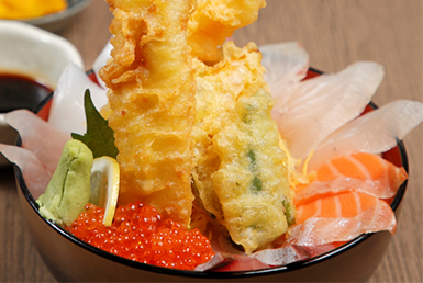 エビと20cm以上のアナゴがのったインパクト大な海鮮丼!